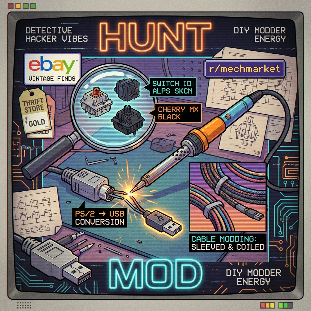 La communauté mécanique s'arrache les vintage MX Black depuis des années. Certains désossent des vieux claviers industriels juste pour les switches. D'autres les modifient (lubrification, remplacement de ressorts) pour atteindre le "linéaire parfait".